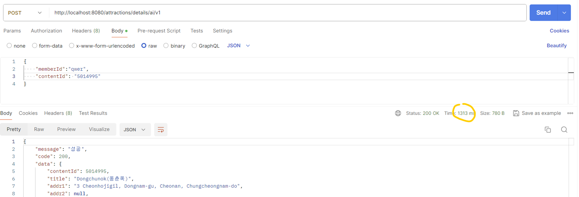 AttractionDto attractionDto = attractionMapper.getAttractionByContentId(memberContentDto);