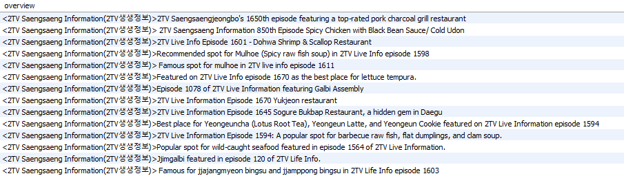 완벽한 번역은 불가능하다고 하더라도, 적어도 2TV 생생정보에 등장한 장소를 방문하려고 하는 외래 관광객이 편하게 검색할 수 있도록, 같은 번역으로 일치되어야 한다고 생각했다.