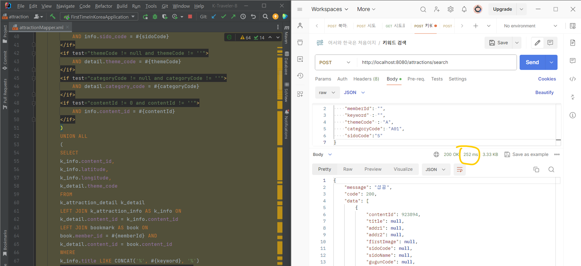 <select id="getAttractionBySearch" resultType="AttractionDto"