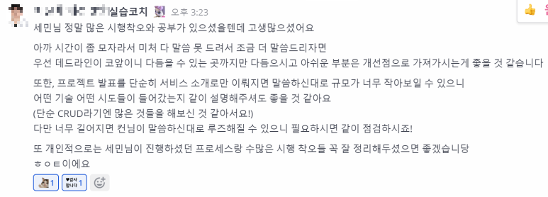 그리고 백엔드 같이 한 오빠가 개발 할 때 "이건 왜 이렇게 짰어?" 하고 질문을 많이 해줬는데